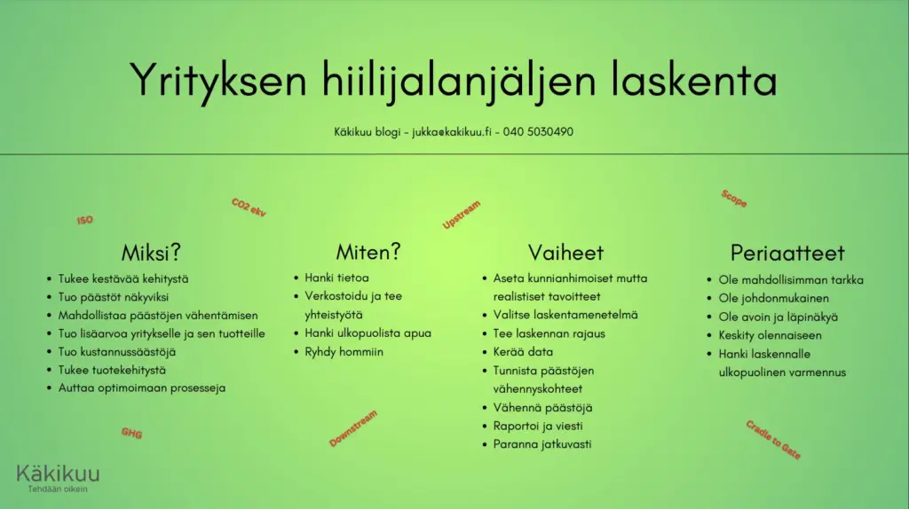 Yrityksen hiilijalanjäljen laskenta on aina yrityskohtainen prosessi.
